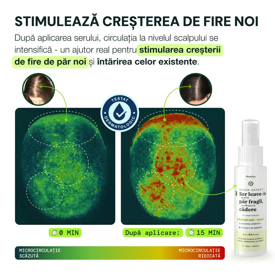 Stimulează micro-circulația scalpului, contribuind la menținerea unui păr vizibil mai dens.