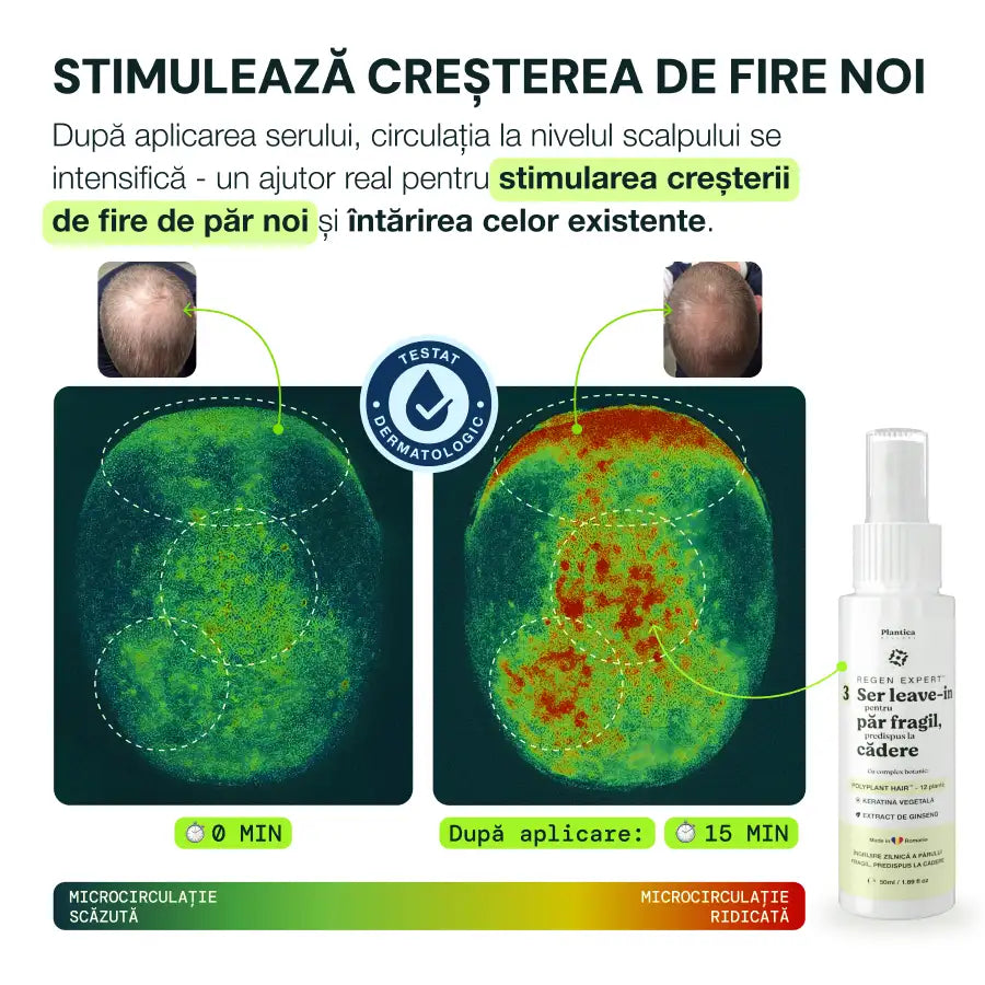 Pe baza testelor realizate pe femei și bărbați cu diferite tipuri de cădere a părului, care au folosit zilnic Setul Regen Expert timp de 90 de zile, rezultatele arată că produsele noastre pot contribui la prelungirea fazei de creștere a firelor de păr și la reducerea fazei de cădere.